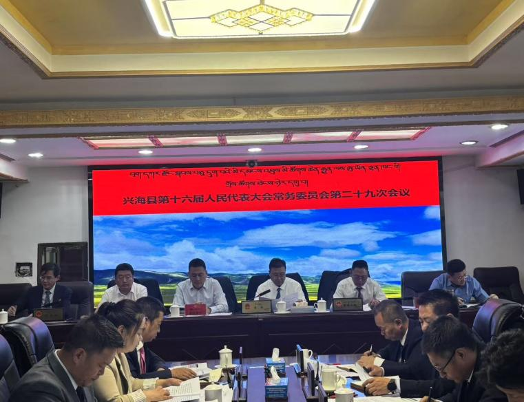 7月29日上午,县人大常委会组织召开兴海县第十六届人民代表大会常务委员会第二十九次会议。县人大常委会党组副书记、副主任才旦,县人大常委会党组成员、副主任夏智尖措及县人大常委会委员共 16人出席会议。县委常委、县政府副县长索南多杰,县法院院长桑杰才旦,县检察院检察长才旦加,县综合行政执法局局长切军多杰,县农牧水利和科技局局长扎西朋措,县市场监督管理局副局长白灵,县发展改革和工业商务信息化局副局长桑杰尼玛,县住房和城乡建设局副局长拉龙本,县自然资源和林业草原局副局长卡毛加,县教育局督导室主任黄延珺列席会议,会议还特别邀请李启珍、多杰才旦2名县级农牧民人大代表出席会议。会议由县人大常委会党组副书记、副主任才旦主持。